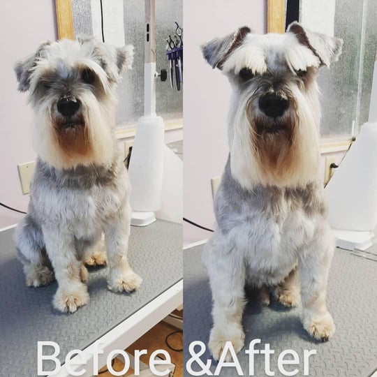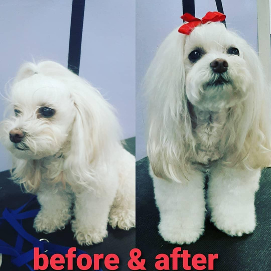 Bath, blow dryer, brush out, nails trim or file, ear cleaning and full hair cut